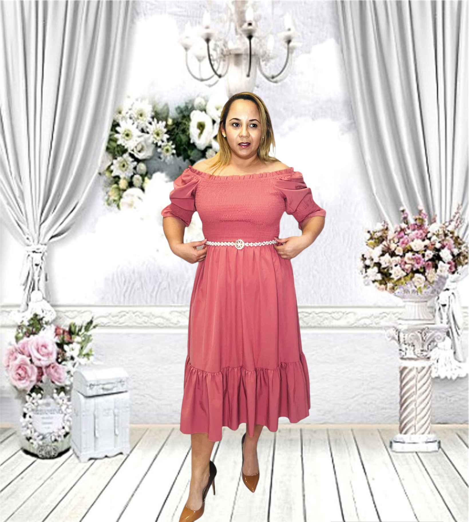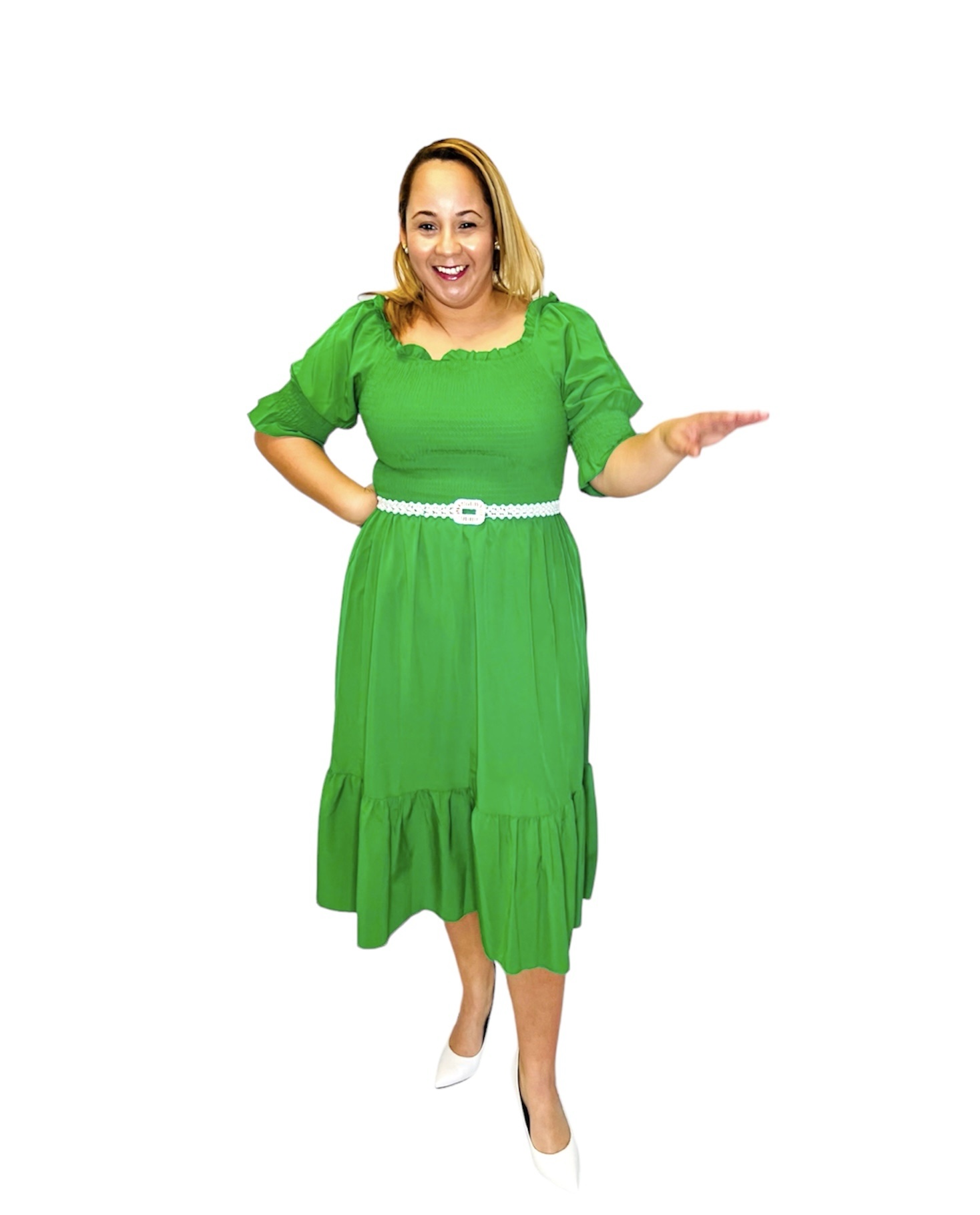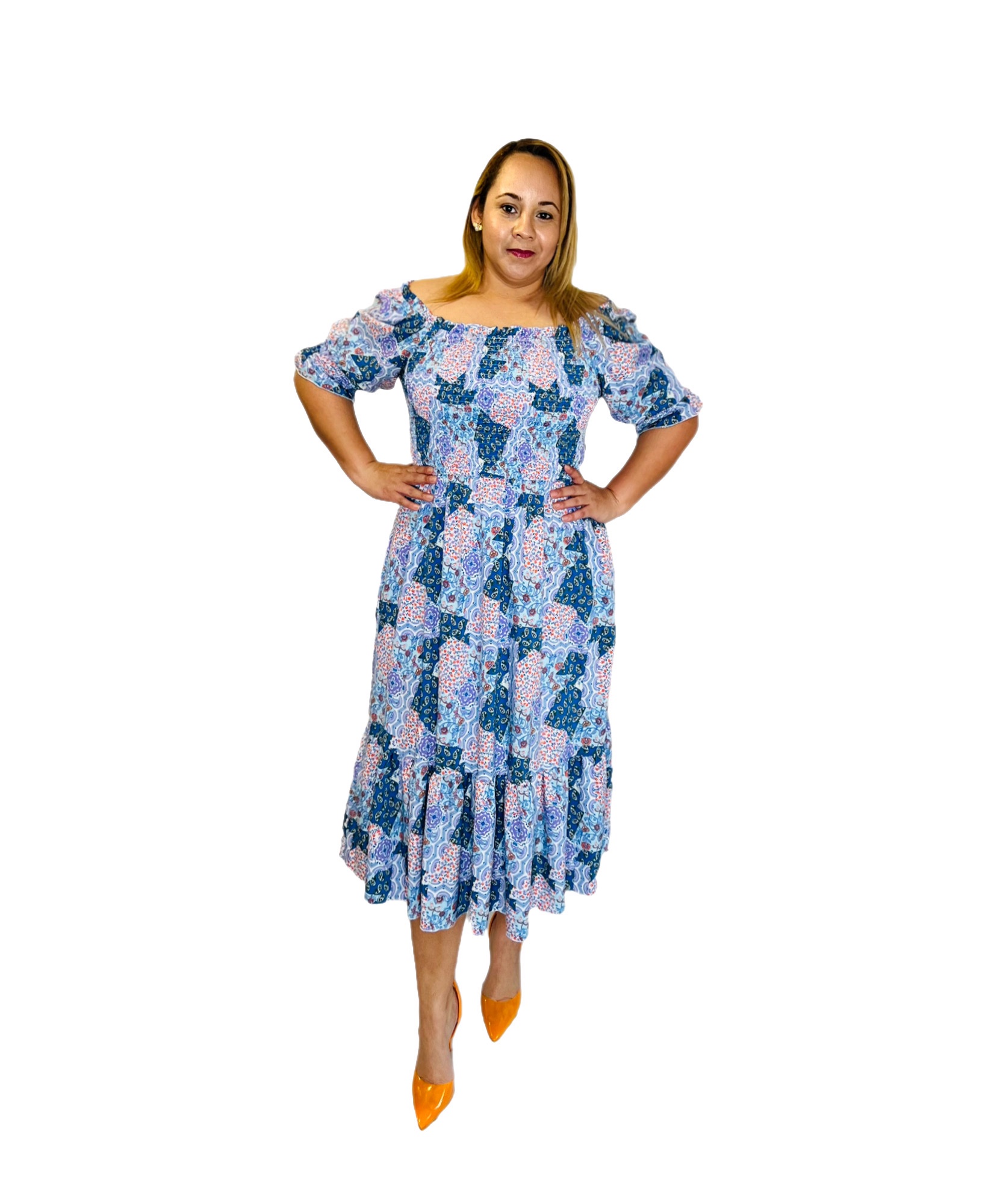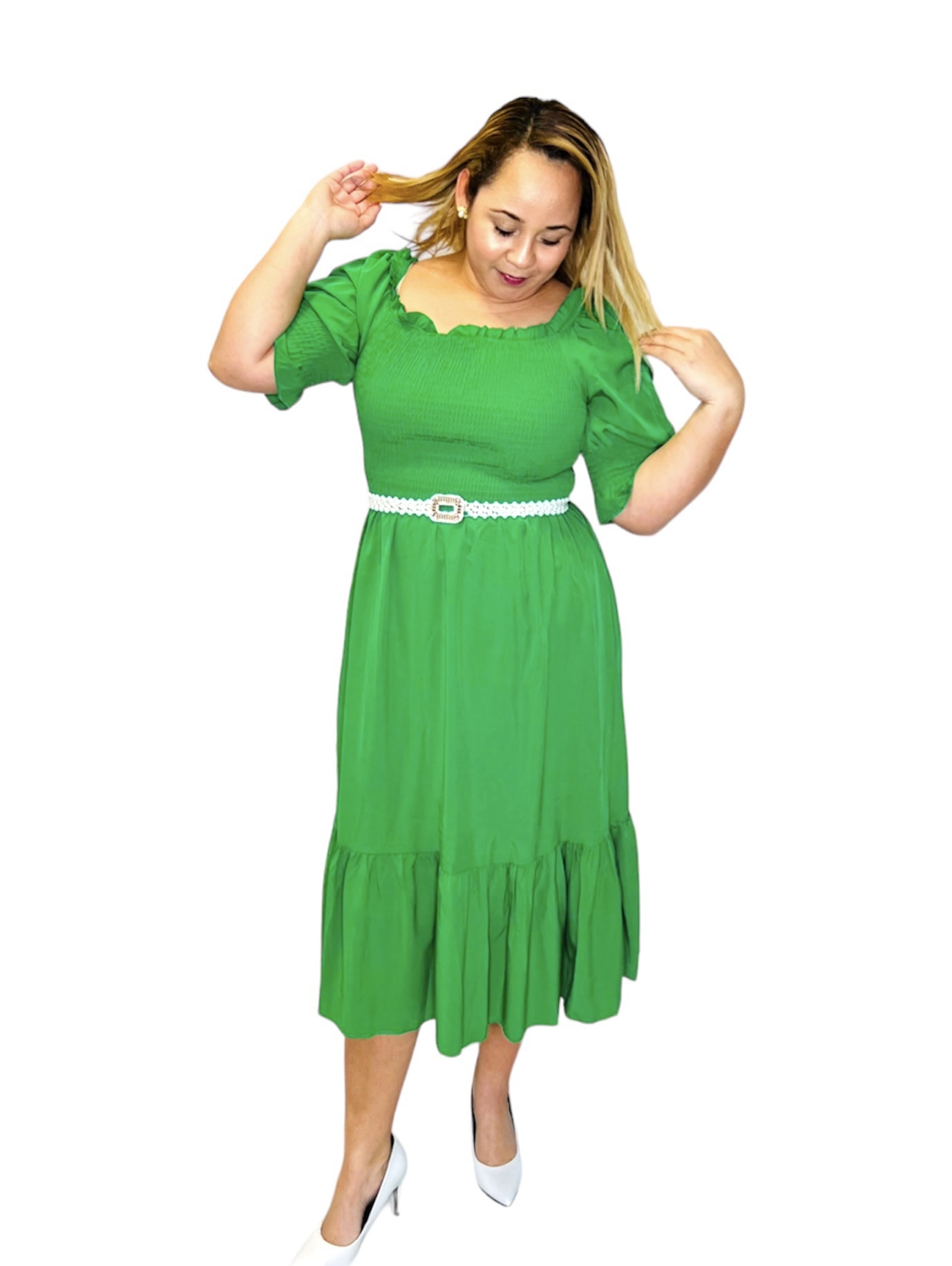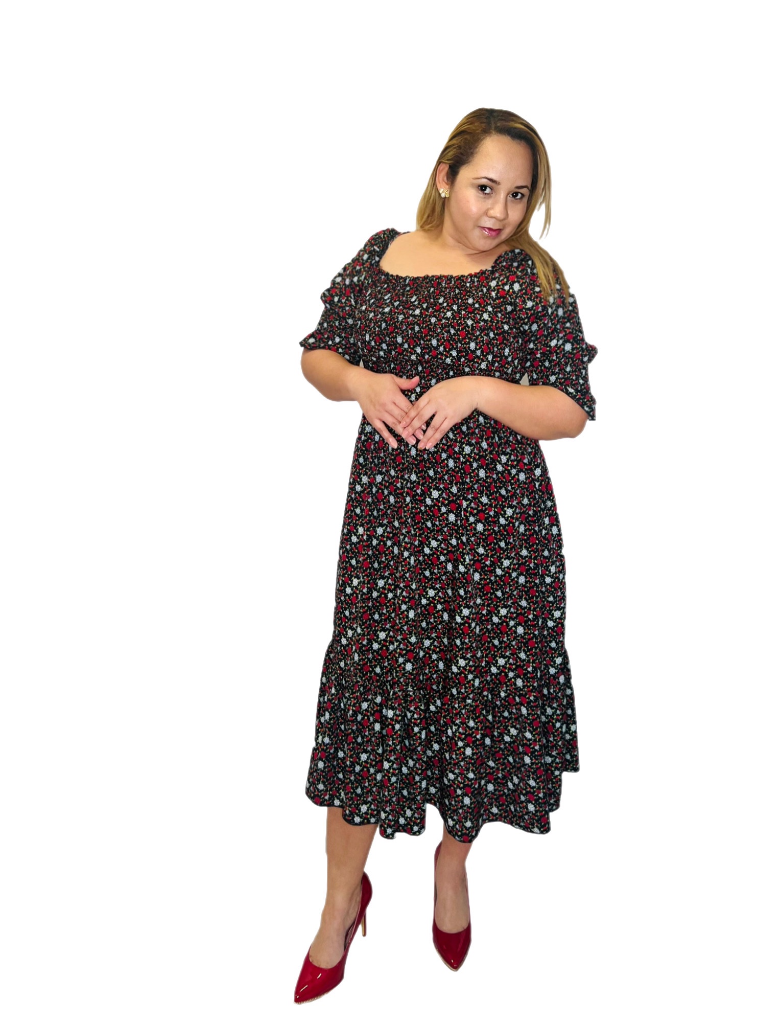 SMOCKED BACK AND FRONT MIDI DRESS